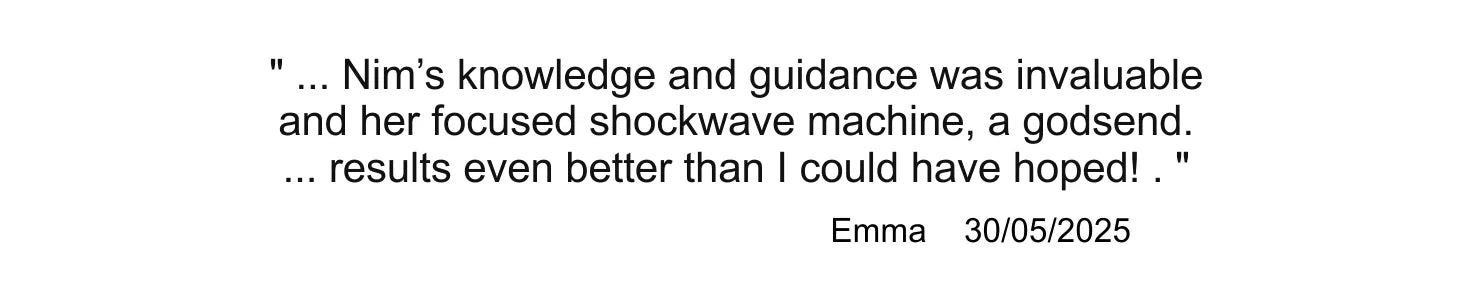 I was struggling with bi-lateral achilles tendinopathy and retrocalcaneal bursitis which was impacting my ability to play sport. Over a number of sessions the Shockwave reduced the swelling, scar-tissue and most importantly the pain and both issues are now completely resolved. I also found Nim extremely professional and really nice to deal with. Recommended.